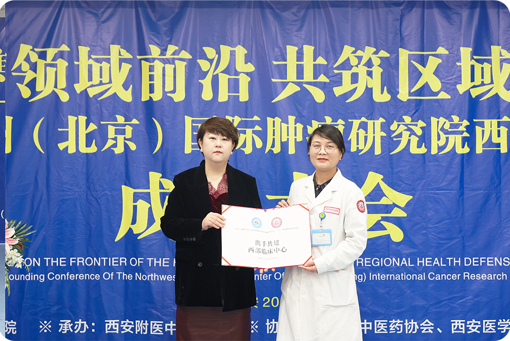 为响应国家“健康中国”战略、推动优质医疗资源下沉的重要举措,依托研究院在肿瘤前沿研究、临床技术、国际交流等方面的优势,联合西安附医中医医院在中医肿瘤防治方面的特色,构建“中西医结合、防治一体”的西部区域肿瘤临床诊疗的新高地。正式授予西安附医中医医院为“亚洲(北京)国际肿瘤研究院西部临床中心”。